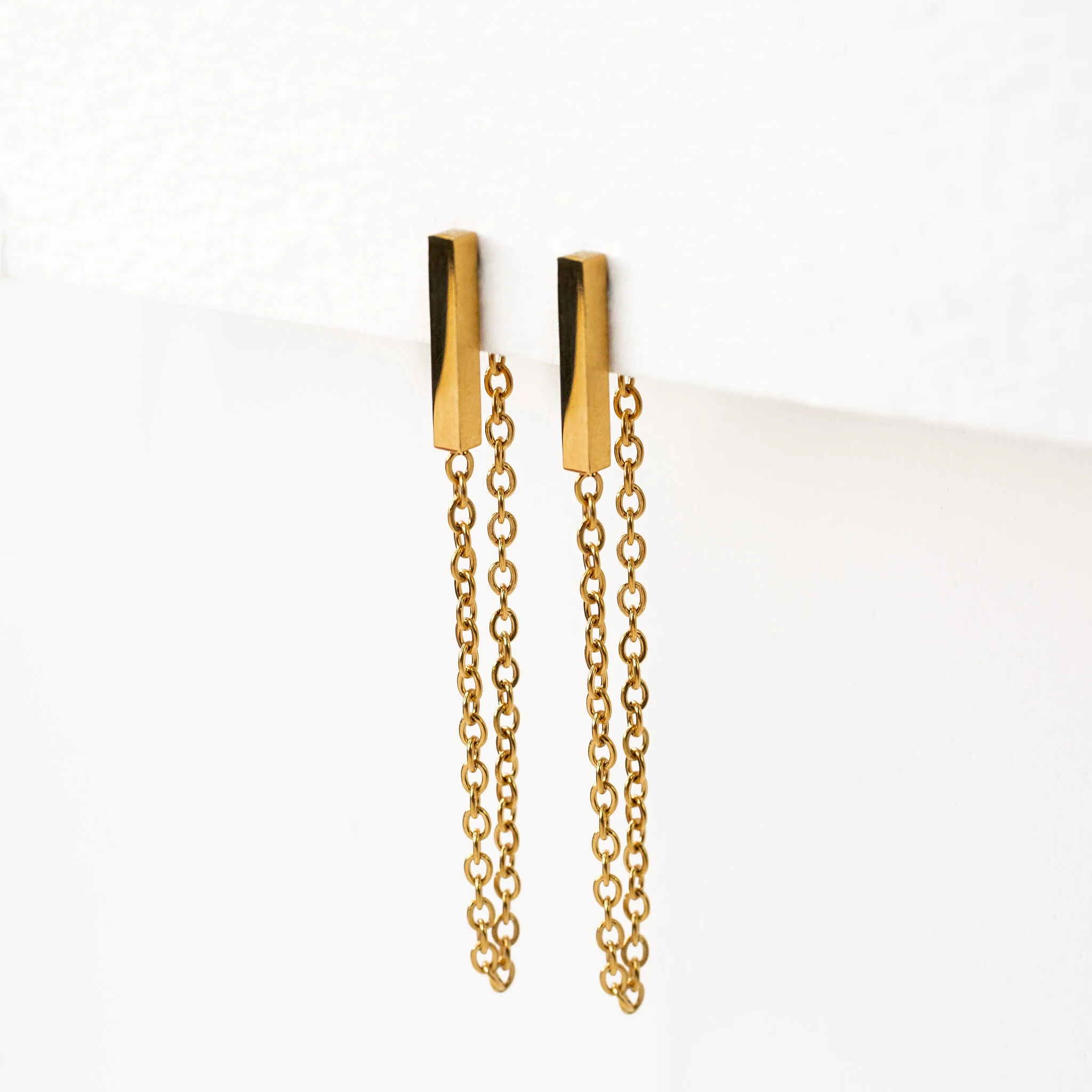 Sleek, modern, and shiny, we gave this classic bar an edge by adding our signature chain drape for sexy movement. Plus, they're waterproof + skin-friendly. What more could an ear want?