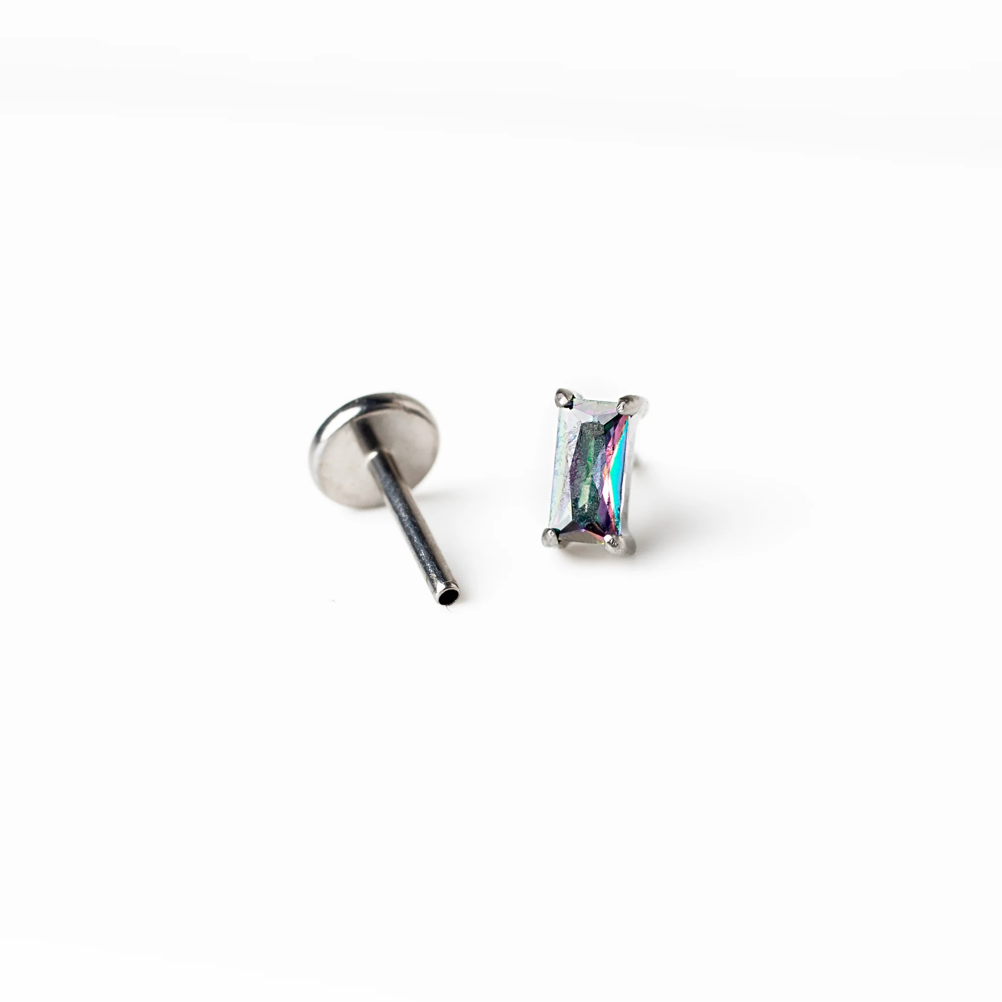 Envy Baguette Solitaire Prong Set Titanium Flat Back Sleeper Earrings