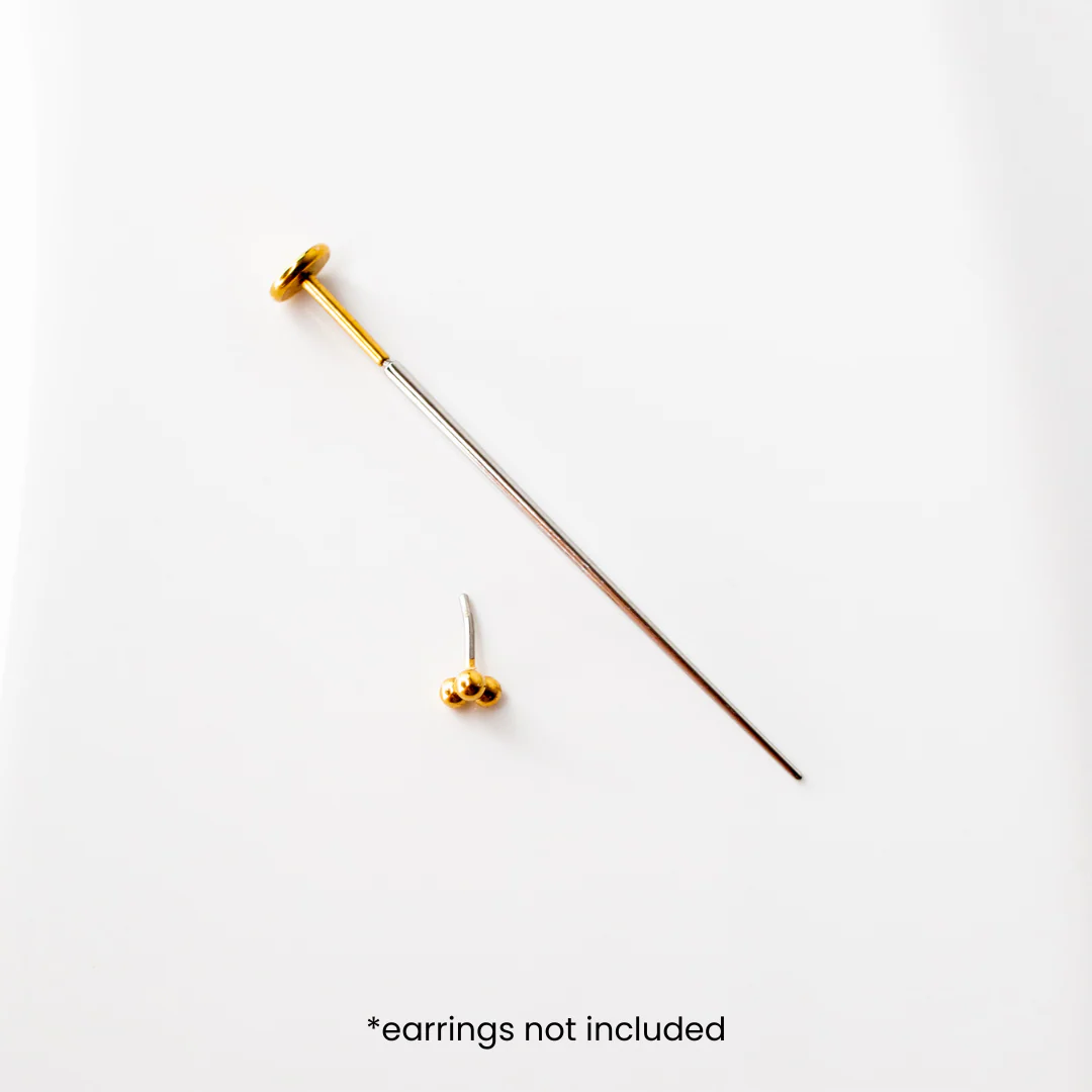 Introducing your new secret weapon — the Flat Back Stud Applicator! Say goodbye to the hassle of dropped studs and fumbling with piercings. This sophisticated tool securely fastens ALL our flat back studs in mere seconds. The sleek, no-poke tip ensures a quick, frustration-free experience, so it's perfect for those with longer nails or unsteady fingers.
