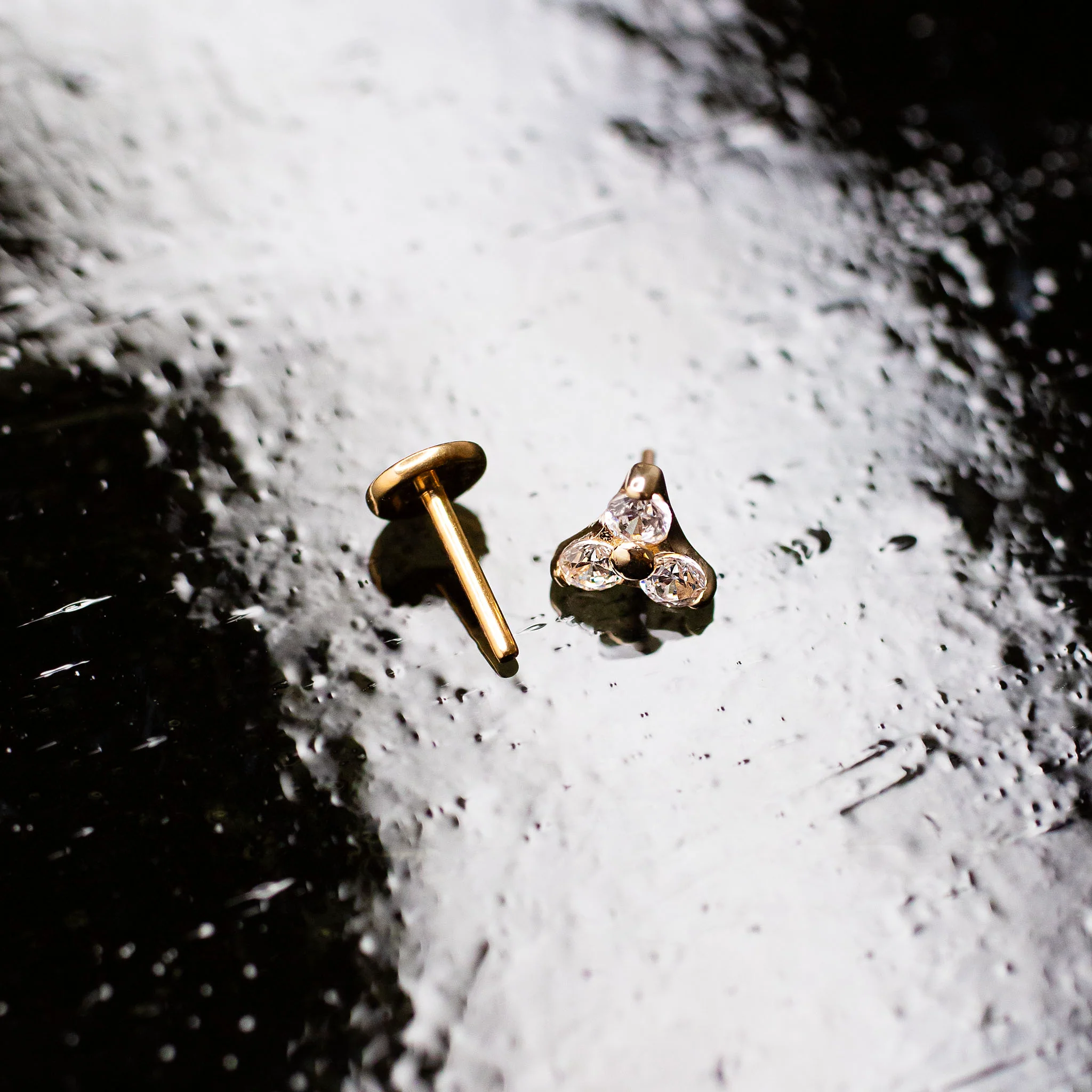• 14 karat solid gold flat back front post, ASTM F136 implant-grade titanium sleeper flat back, cubic zirconia crystals