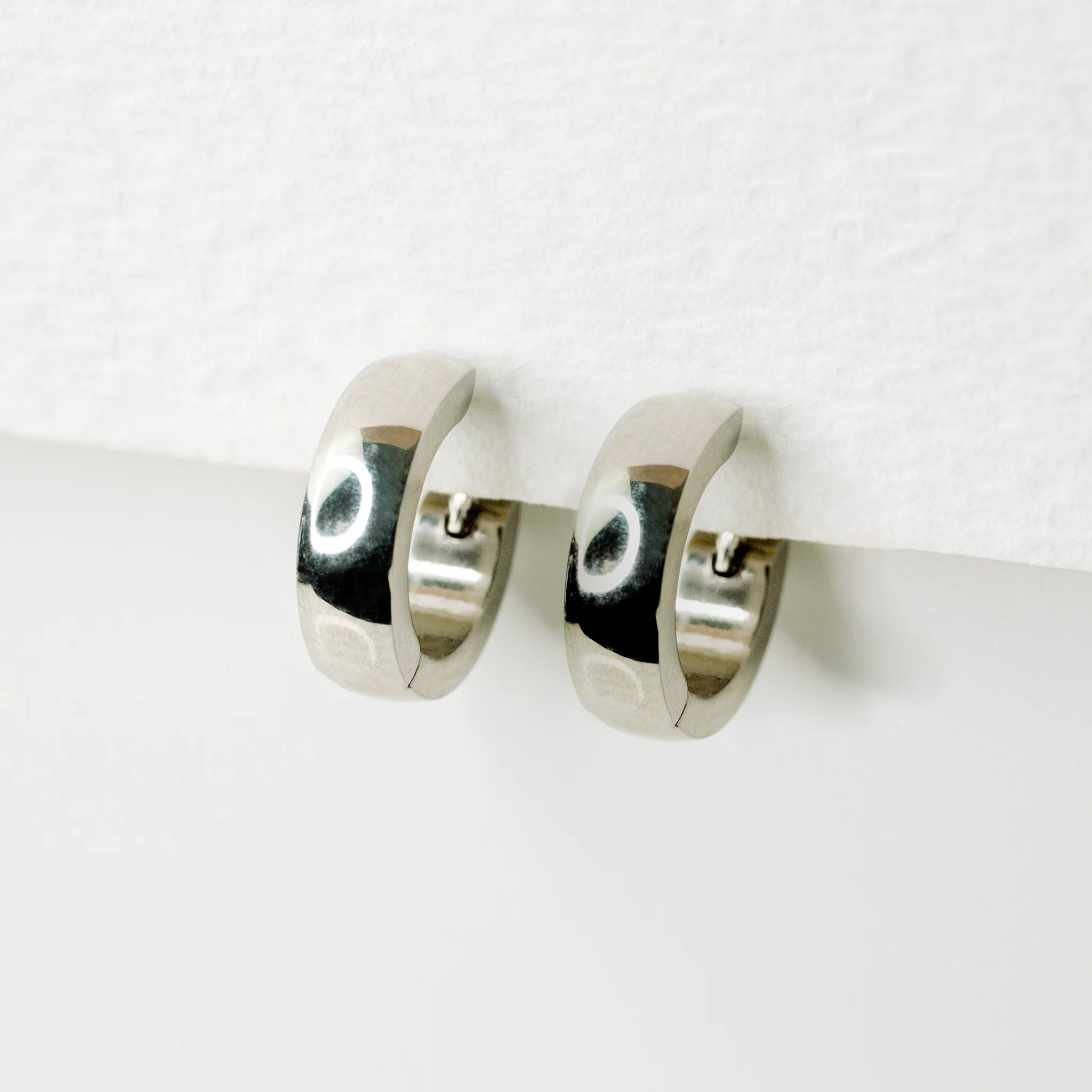 Narrow Dome Locking Huggie Earrings - Pair