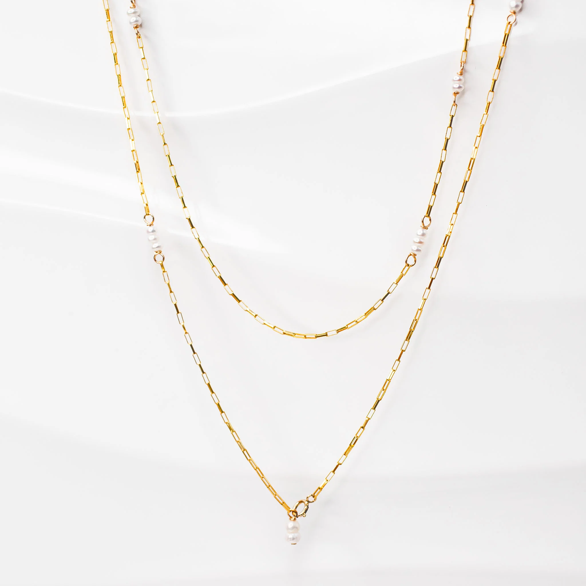 This innovative, sleek necklace is fully adjustable and layers like a dream. The length allows you to wear it in a long loop, doubled up, or even as a Y-necklace. Studded with the perfect number of elegant natural pearls of the highest quality, this beauty has a hint of flash in all the right places. An ideal travel companion and jewelry chameleon, our Pura 3-in-1 is your new solution to stress-free styling (with a lot of bang for your buck)!