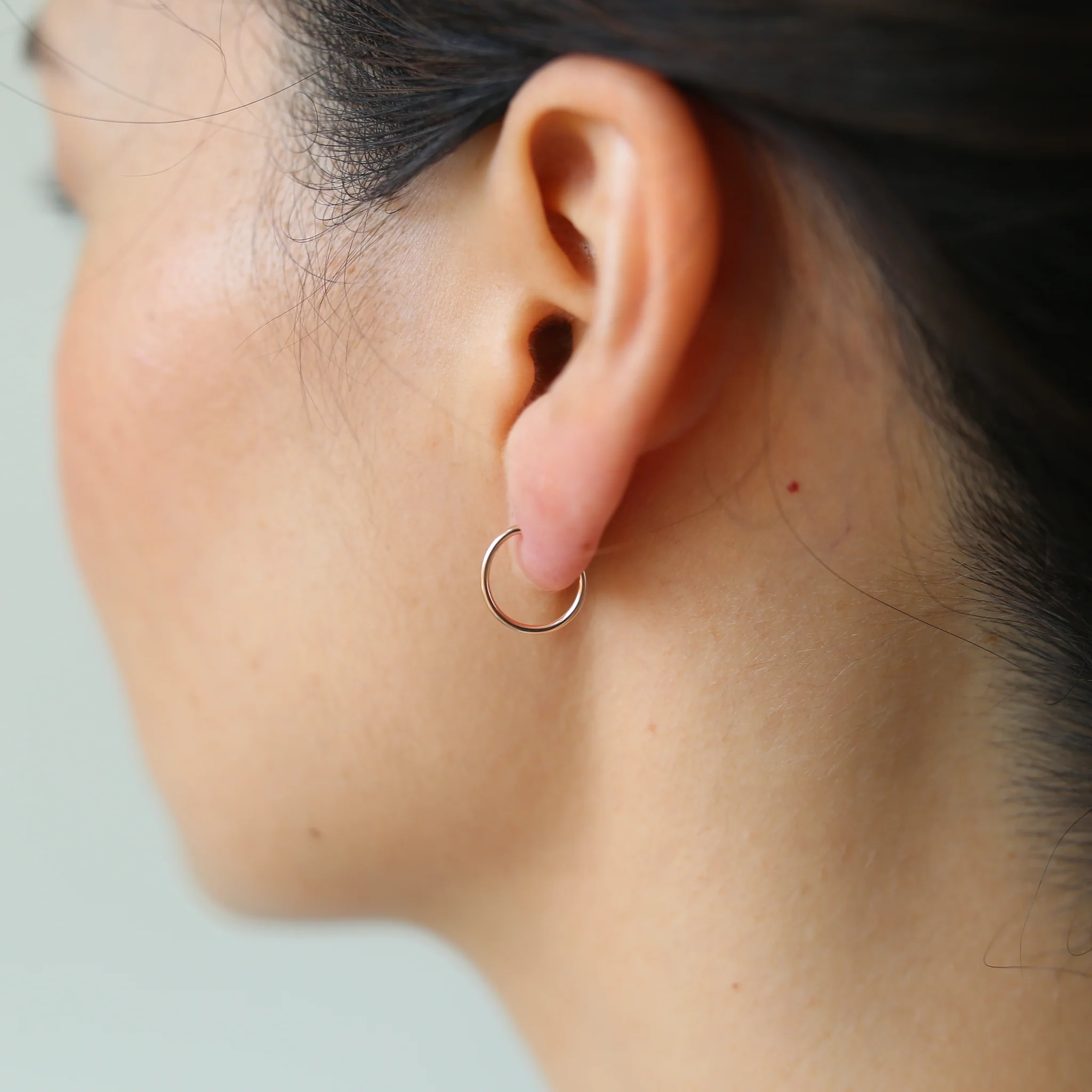 2. Gently scoop your earlobe into the c-curve of the hoop.